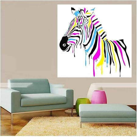 XIAOXINYUAN Mur Art Imprimer Photos Abstrait Animal Multicolore Zèbre sur Toile Peinture Affiche pour Salon Décor À La Maison 80X80 Cm: Amazon.fr: Cuisine & Maison